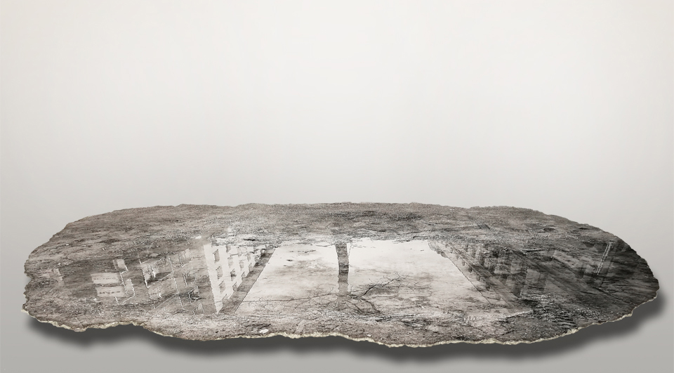 "WEATHER/ WETTER" Mixed Media, Beton, Laserdruck auf Papier Kunstharzbeschichtung 190 x 80 x 4 cm 110 kg 2017